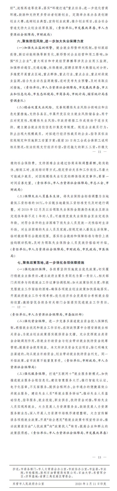 東營市人民政府關(guān)于進(jìn)一步做好疫情防控形勢下穩(wěn)就業(yè)工作的若干政策措施的通知